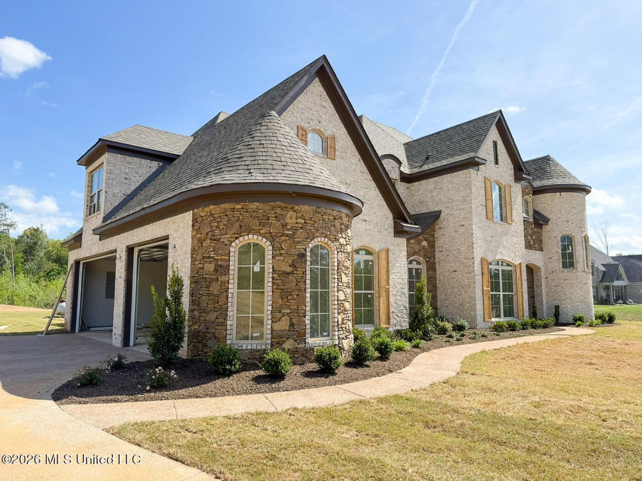 NOW under construction - your castle on the hill! Come customize this gorgeous, French country home for you and your family! This home will sit on a 2.89-acre lot with 3,349 sq. f.t. and (3) car garage! Home will feature 5 bedrooms (split floorplan with (2) bedrooms and (2) bathrooms downstairs; (3) bedrooms and upstairs (or 2 + bonus). The bathroom upstairs is a Jack & Jill, giving more privacy for the upstairs guests. Primary bedroom has wood flooring, lots of windows, decorative tray ceiling & features huge salon bath w/walk through shower, tiled floors, soaker tub, quartz top vanities and His/Her walk-in closets. Kitchen features custom cabinets, quartz tops, island with custom knee wall, backsplash, stainless steel appliances to include double ovens, gas cook-top and custom or SS vent-a-hood. Kitchen will also be upgraded to include wine cooler and pot filler. There are tile floors in all wet areas, hardwood floors in Primary bedroom, Dining, Foyer and Living room. The living room has cathedral ceilings, recessed lights, ceiling fan and custom fireplace with gas logs...open to the kitchen. Other features include bullnose edges, smooth ceilings, custom master bedroom and dining room ceilings, security system, tankless hot water heater, covered front and back porch and so much more! Photos are from plan previously built. Builder reserves the right to change up colors, elevation, etc. Est. Completion April 2026.